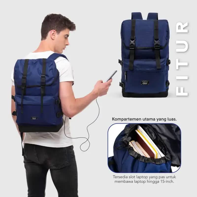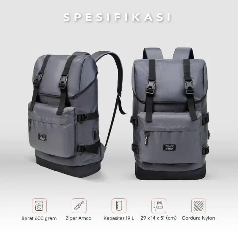 - Kapasitas: 19L dengan kompartemen utama luas yang dapat menampung laptop hingga 15 inci.