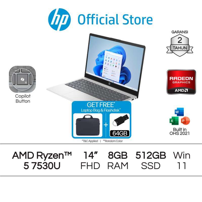 Rasakan performa unggul dari Laptop HP dengan prosesor AMD Ryzen™ 5 7530U, didukung oleh grafis Radeon™ dan RAM 8GB untuk multitasking yang efisien. Nikmati kecepatan dan ruang penyimpanan ekstra dengan SSD 512GB, ideal untuk menyimpan seluruh dokumen, foto, dan aplikasi penting Anda.