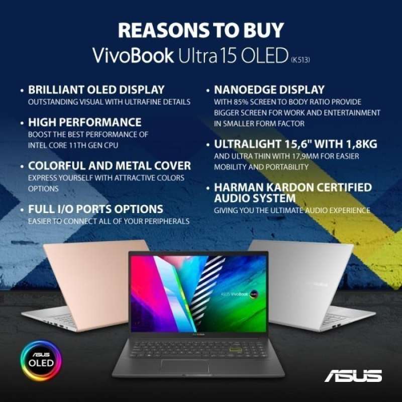 Rasakan keunggulan dari Laptop ASUS VivoBook Ultra 15 K513EA-OLED551, pilihan sempurna untuk kebutuhan komputasi sehari-hari Anda. Ditenagai oleh prosesor Intel® Core™ i5-1135G7, laptop ini menawarkan performa yang andal dan efisien. Kombinasi RAM 8GB dan penyimpanan SSD 512GB NVMe memastikan proses multitasking lebih lancar dan waktu muat lebih cepat.