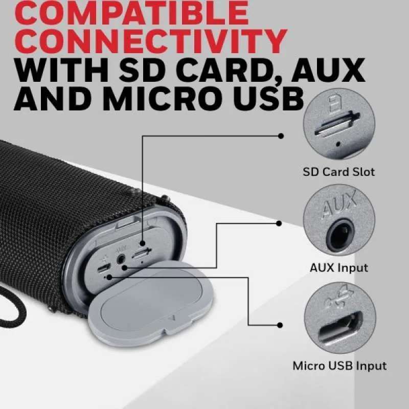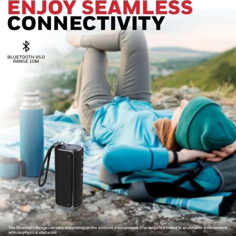 - Desain Tahan Air: Dirancang dengan tingkat ketahanan air IPX6, speaker ini ideal untuk aktivitas luar ruangan.